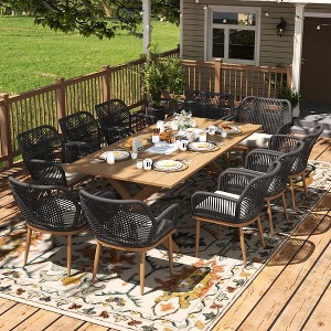 LayinSun Patio Dining Set with Rectangle Slatted Top Table and Dining Chairs