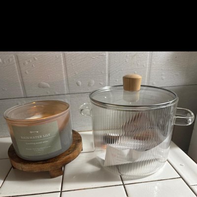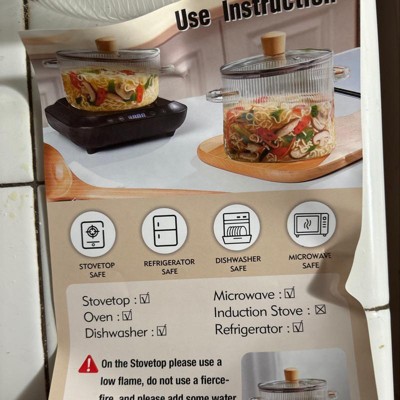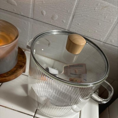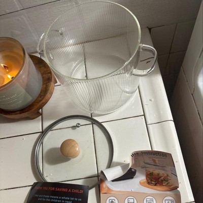 Le'raze Glass Ribbed Cooking Pot with Lid - 2L68oz - Heat Resistant Borosilicate Glass