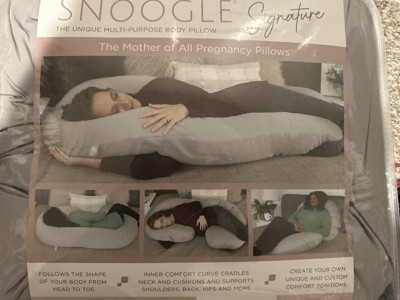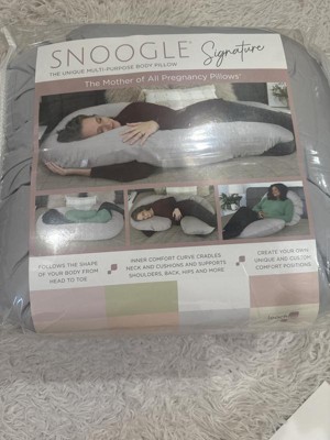 The Snoogle Signature total body pillow was uniquely designed by a registered nurse and mom to follow the natural contour and shape of your body from head to toe. The inner comfort curve cradles and supports your neck, shoulders, tummy, back, hips, legs, and more. Enjoy your Snoogle Signature any way you choose to create your own unique and customized comfort positions as your body changes. Features a removable zippered cover for ease of use.