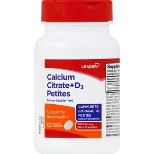 Leader Calcium Citrate + D3 Petites 120 ea: Support your bone health with Leader Calcium Citrate + D3 Petites. This easy-to-swallow formula delivers the right combination of calcium citrate and Vitamin D3 to promote strong, healthy bones. Calcium is essential for bone density, while Vitamin D3 enhances calcium absorption. These petites are ideal for those who prefer a smaller, more convenient tablet without compromising on quality. Perfect for daily maintenance and long-term bone health.