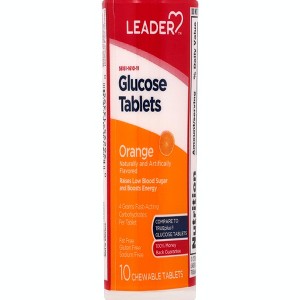 Leader Glucose Chewable Orange Tabs 6 CT: Leader Glucose Chewable Orange Tablets are designed to provide quick and effective relief for those with low blood sugar. Each tablet contains glucose, which is absorbed rapidly by the body for fast energy replenishment. The refreshing orange flavor makes it easy and enjoyable to manage your glucose levels while on the go.
