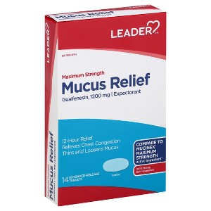 Leader Mucus Relief Tablets, Fast-Acting Expectorant Support for Chest Congestion and Mucus Relief, 14 Count