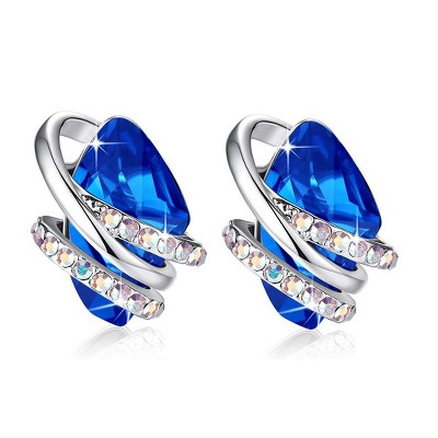 - Specifications - Earring Charm Size: 0.53" x 0.68" |Earring Hooks: Stud Post Back |Plating: 18K Rose Gold Plated | Stone: Sweet Heart Fancy Stone, Sapphire Blue; Flatback Zirconia Rhinestones, Crystal AB Color.