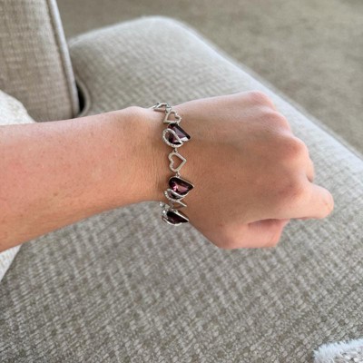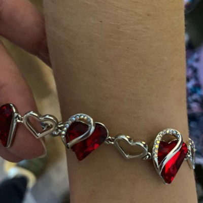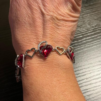 - Delicate Birthstone Jewelry that Lasts - This chain bracelet is adorned with 0.53 x 0.68-inch Siam Ruby Red birthstone crystal for January and July. It is silver plated and 7 inches long, with a 2-inch extender. Each link bracelet is also designed with a secure lobster claw clasp.