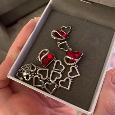 [This review was collected as part of a promotion.] I have small wrists and always worry about bracelets being too big. The adjustable clasp on this one allowed me to adjust to the smallest setting and it fit perfectly. The bracelet had three red hearts that are accented nicely by the sparkling studs and silver. The bracelet definitely adds a nice accent to a plain outfit. I think the bracelet is good quality for the price. I also wanted to highlight the box because it is cute and makes a great addition if you’re buying this as a gift.
