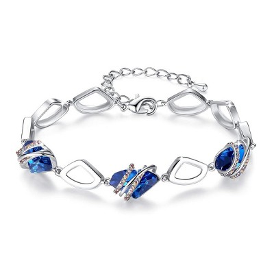 - Specifications - Bracelet Charm Size: 0.53" x 0.68" |Bracelet Length: 7"+ 2" |Plating: 18K Rose Gold Plated | Clasp: Lobster Claw | Stone: Sweet Heart Fancy Stone, Sapphire Blue; Flatback Zirconia Rhinestones, Crystal AB Color.