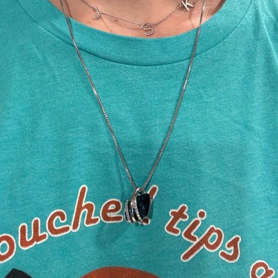 [This review was collected as part of a promotion.] This is a perfect length, with some room for adjusting. Right now I took pictures of it, just below my collarbone, but it could go a little in either direction. My only complaint is that it is not double-sided, the back has a gold plate across it so you need to make sure it doesn't get twisted. The chain especially feels really nice quality. I like that the chain is kind of between a rose gold and true gold, changes things up