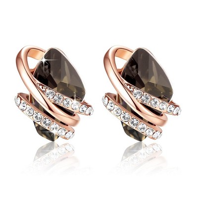 - Earring charm measures 0.5" x 0.5"; Stud post back; Galatic crystal, ruby red; Flatback zirconia rhinestones, crystal AB color; 18K rose gold plating