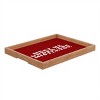 - The Deny trays are 100% sustainable, eco-friendly flat grain amber bamboo wood frame with satin finished printed tray bottom