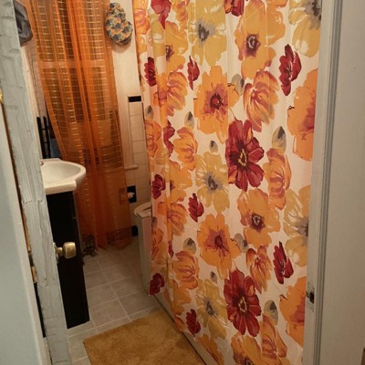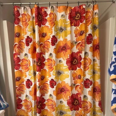 Add a touch of spring to your bathroom with our Leah Shower Curtain. This eye-catching watercolor floral print is sure to add elegance and energy to your space. Add a pop of color to your bathroom with this pattern of large blooming flowers. This floral shower curtain radiates charm, adding elegance and fun to your bathroom decor. Turn your primary or guest bathroom into a spa-like experience with this charming botanical shower curtain. Bursting with color, this spring inspired bath curtain is easy to fit with your existing decor. It is available in lengths of 72 inches (standard), 78 inches, or 84 inches to suit your preferences. The 12 button holes at the top of this shower curtain make it easy to hang with hooks or rings, ensuring a simple installation process. Because this is a fabric shower curtain, we recommend pairing it with a liner, sold separately. This shower curtain will complement many design styles including traditional, farmhouse, and country cottage. This shower curtain offers easy maintenance, simply machine wash cold on the gentle cycle and tumble dry on low. If needed, use non-chlorine bleach for cleaning or an iron on low heat to release wrinkles. Please refer to the product label for full care instructions.
