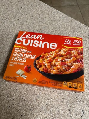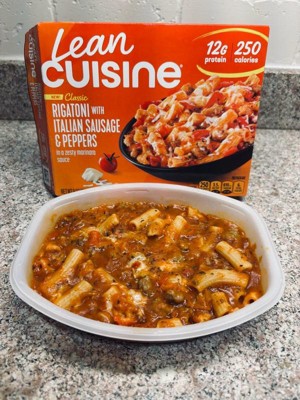- CHEF CRAFTED: Our chefs work side-by-side with dietitians to create ridiculously tasty frozen Lean Cuisine meals. This dish features freshly made rigatoni with Italian sausage and peppers in a zesty marinara sauce