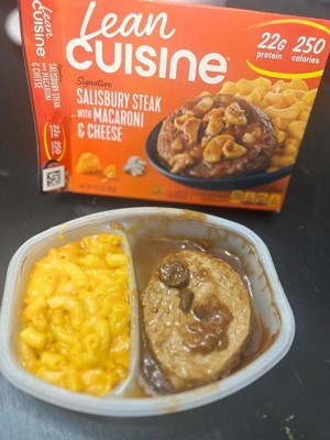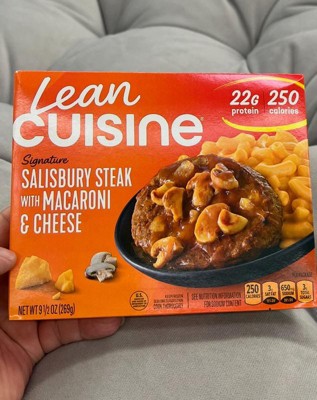 Progress never tasted this good -- Lean Cuisine Frozen Salisbury Steak with Macaroni and Cheese is a quick, satisfying option for busy weeknights or effortless frozen lunches. Our Salisbury steak is complemented with a creamy mac and cheese for real comfort you can feel good about. Whenever you're searching for perfectly portioned meals that fit into your routine, think of Lean Cuisine. Whether you're stocking up on convenient frozen dinners or looking for diet food that fits your meal plan goals, Lean Cuisine makes it easy to stay on track. This dish has 21g of protein, making it a meal you can count on to help hit your macros. Simply microwave and enjoy — no prep, no cleanup, just smart eating made simple.
