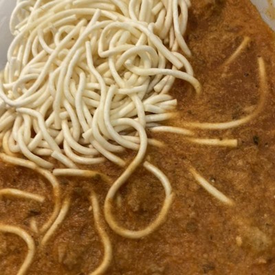 This is just gross! Their sauce for rigatoni and ravioli are pretty much the same. So, I thought this spaghetti would have the same sauce, but with a little spice because I could smell it. NOPE! tastes like plastic.