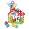 Home is where the learning starts! Let’s take a tour of this hands-on non-electronic toy house for babies and infants. Check for mail, flip the switch up and down, open and close the door or window, and giggle as the cat pops up from the bushes. Head to the side of the house and make a butterfly friend on the spinning gears. Spin one and watch them whirl! Open concepts are all the rage these days; stretchy bands on the side and back let curious homeowners poke and pluck, or easily put in or take out the tissues, blocks and balls. Make playtime go through the roof by pulling the tissues up the chimney, dropping the numbered balls down, or matching the four shape blocks to their slots. With busy play on all sides, this dwelling is ready to welcome little ones home! Intended for ages 6+ months. Batteries not required.