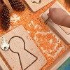 - Fit the pieces into the shapes, draw around them, fill them with sand, beads, buttons or squish them into play dough