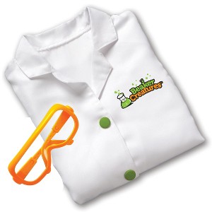 Become an official creature scientist! Add a touch of imaginative role play fun to every experiment session with the Beaker Creatures Lab Gear from Learning Resources. Little scientists can look the part with this set that includes a white Beaker Creatures lab coat and pair of pretend lab glasses cast in the official Beaker Creatures orange. Clad in this science-y costume, kids can turn their science adventures with Beaker Creatures into memorable imaginative journeys, whether they're extracting mysterious alien creatures from bubbling Reactor Pods or performing a hands-on science experiment from a Beaker Creatures guide. Beaker Creatures Lab Gear pairs with all Beaker Creatures lab sets (including the Liquid Reactor Super Lab, Whirling Wave Reactor, and Magnification Chamber) as well as other science experiment sets. The included lab coat and glasses fits most children ages 3–6, and are sturdy enough to survive multiple mad science experiments and crazy creature reactions.