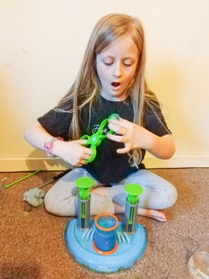 My boys aged 4 and 6 absolutely loved the Liquid Reactor SuperLab. They were totally engrossed. They enjoyed watching the beaker creatures fuzz and working out how to use the pumps to move water into the main chamber. Their play turned them into mad scientists. Plus they loved to find the beaker creatures once they had dissolved and fizzed away.