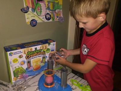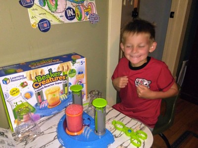he moment my son saw the Beaker Creatures Lab set he wanted to test it out immediately. I knew that he would enjoy this as science has always been so exciting to him. I let him set it up and minimal help was needed from me. We added food coloring as suggested to the water and my son was eager to pour and inject to see what would happen. It sizzled for quite a while which of course is the most exciting part. He then dissected the creature from what was left. He was excited to locate it on the chart to see which one he got. Overall I suggest this for a little scientist or even just the beaker creature refills would be cool in the bathroom. My son is 6 and I liked that this was easy enough for him to do himself. I think this will be a great gift for lots of his school friends this year!