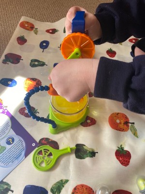 My girls were excited as soon as we opened the box!! Lots to look at and play will, we followed the instructions to hatch the creatures, which were very easy for them to do, they loved watching the eggs bubble and hatch and the creatures that came out. After looking through the instruction book for other ideas they wanted to try the bubbles – great success. They have since been using the equipment to do lots of self-lead experiments in the garden, lots of imagination used. The tools are very robust, colourful, and fun. They are keen to do the other experiments in the book we just need to do a bit of shopping first. We will defiantly be collecting some of the other creatures in the set. I think the best thing about this set is how it sparked such an interest for my girls, they love using the tools to do their experiments.