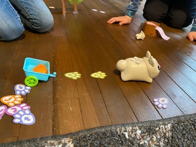 [This review was collected as part of a promotion.] We were excited to try this out, but were unpleasantly surprised by the poor quality. If my kids don't play with it on the counter or table it does not move, as we have carpet. I would rethink the movement quality of the rabbit.