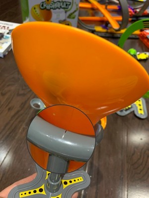 Be careful when you insert the orange funnel into the holder. The grey bracket/arm cracked when my son was assembling it brand new out of the box. Would have given more stars had the piece not cracked when assembling.