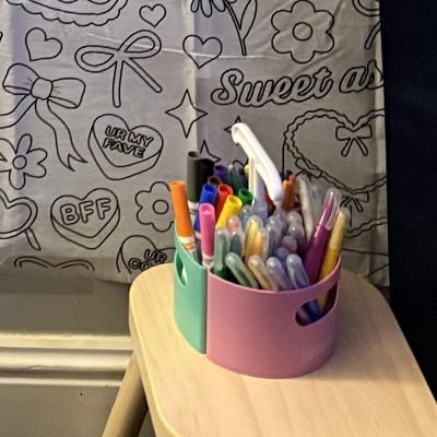 Perfect size for my granddaughters playroom table. Holds crayons, markers and small pads of paper. Super cute colors too.