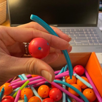 - 129-PIECE SET: Includes - 60 sticks in 3 sizes, 20 curves, 34 connectors, and 15 double-sided activity cards
