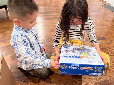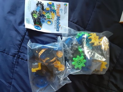 - STEM building set! DESIGN new twisting, turning Treadmobiles, or follow along with the included Activity Guide!