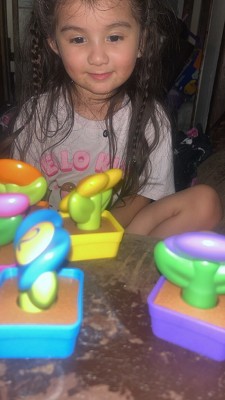 This educational playset is designed for toddlers, making learning fun through color matching and number recognition. Guests appreciate its durability and engaging features, such as a watering can and finger puppet flowers. While it captivates younger children, some older kids may find it less stimulating. Overall, it serves as a versatile tool for imaginative play and early learning, encouraging creativity and interaction among young minds.