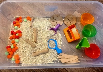 [This review was collected as part of a promotion.] These are the perfect sensory activity for both toddlers/young kids. They work in a variety of sensory textures like water, sand, water beads, etc. The bright colors and large handles are a great touch! My kids had a blast putting the water beads, sand, and water through each tool and they were occupied for hours! Definitely a must have!