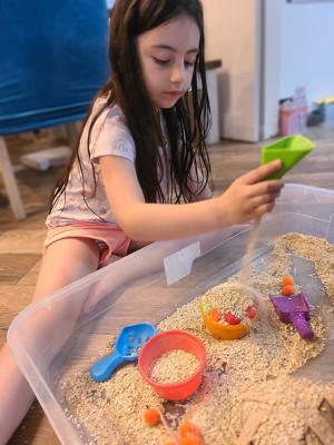 [This review was collected as part of a promotion.] This is perfect for little hands in sensory bins. Used with both sand and rice and the kids loved them. No cons in my opinion!