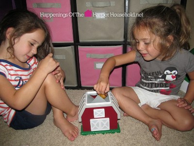 My three year old loves playing Hide-n-Go Moo. She reaches inside the barn and tries to guess the animal by telling us what she feels. SHe also enjoys matching the mommy animal to the baby animal. I like that the pieces are big so I don't have to worry if baby sister gets her hands on anything. Plus it is very durable and definitely built to last.