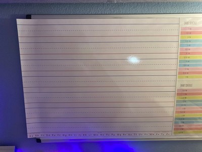 Now there’-s no need to waste chart paper or draw handwriting lines—-just write, wipe and reuse! The design reflects students’- horizontal handwriting paper used in elementary classes. This allows students to practice the lesson as it’-s being taught on the board. Use it to demonstrate how to properly write letters, words, numbers, sentences, and more!