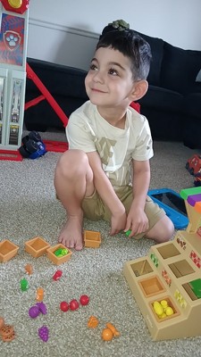 [This review was collected as part of a promotion.] A fun educational toy that my son plays with daily. He loves separating the items by color. The toy money is a fun addition because he's able to pretend to be a shop owner who is selling you something.