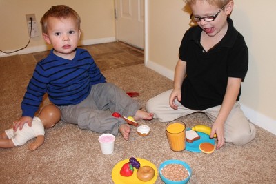 Grandkids love playing restaurant with their new foods.