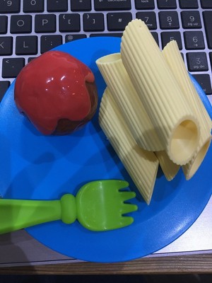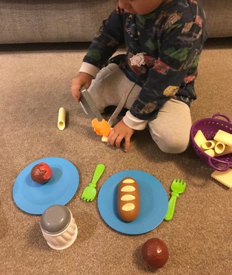 Bought as an addition to my twins play kitchen food collection. Bright, vibrant colours, chunky pieces so not concerned about them being lost quickly under the sofa etc. Would have benefited from another type of pasta maybe, but does come with two types so maybe that's just me being fussy.