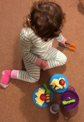 My almost 3-year-old daughter loves this! She thoroughly enjoys spending time 'preparing meals' for her Dad and I, she will count the pieces to ensure we both have the same amount and has taken time to mimic how we cook and serve her meals. All the items are ideal shapes, they look like real pasta – only slightly larger – making them ideal for small hands to grasp. The items are good quality, brightly coloured and the tongs are easy for little hands to use. Ideally, I feel a saucepan would make a great addition to this product however it is still a great toy. Overall, we would definitely recommend this product as it provides hours of fun role play and it can be used to enhance counting and fine motor skills.