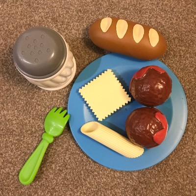 It's a pastariffic way to pretend! Serve up imaginative Italian feasts with the realistic play food found within the New Sprouts Pasta Time set from Learning Resources. This 20-piece play food set features everything kids need for their next imaginary meals, including meatballs, ravioli, noodles, bread, and even a cheese shaker! In addition to scrumptious-looking food, New Sprouts Pasta Time also includes all of the kitchen-inspired tools needed to serve a meal, from plates and forks to tongs and a pasta strainer! Dream up imaginative dinners, introduce table etiquette, learn kitchen vocabulary, and more—this play food is ready for learning fun! Sized just right for little hands, the play food found in New Sprouts Pasta Time works with all of our popular New Sprouts line of products, as well as existing play kitchens and food sets. When playtime is finished, each piece of durable plastic play food wipes clean for easy storage.