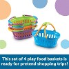 Grab a stack of freshly designed shopping baskets sized especially for little hands. Set of 4 in New Sprouts® colors (orange, green, purple, blue). Oval baskets measure 8½”L x 7″W x 4″H.