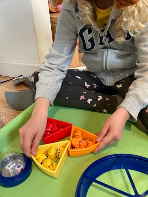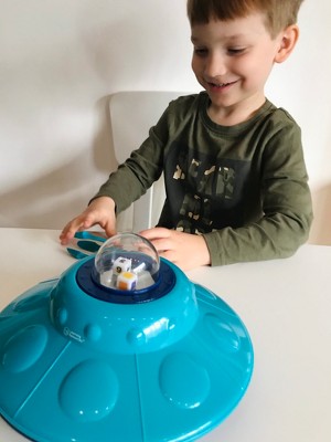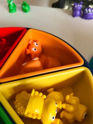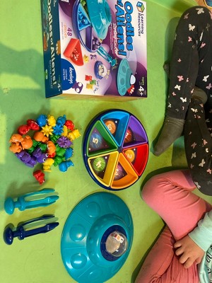 Grab the Tri-Grip Tongs, pop the dice, and help these aliens sort out their spaceship in a sorting game of cosmic proportions! Kids learn preschool sorting, fine motor skills, and more with every trip aboard the Oodles of Aliens Sorting Saucer from Learning Resources. This fun sorting saucer opens to reveal color-coded trays and the aliens that inhabit them. Spread the aliens out on the table, pop the dice, and use the Tri-Grip Tongs to grab and sort them into place! In addition to sorting, this game builds three additional preschool skills at once—strengthen your counting, color recognition, and fine motor skills every time you play! The Oodles of Aliens Sorting Saucer includes 30 alien creature figures that store inside for easy clean-up, as well as an activity guide with fun sorting games! This fine motor sorting game makes a great addition to preschool and homeschool resources, as well as kindergarten activities!