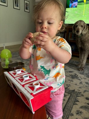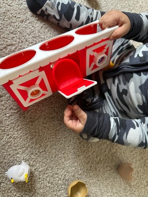 - What Do Kids Learn?: Explore this preschool toy's fun ways to build fine motor skills—drop the eggs into the coop, then lift, pull, and rotate the doors to reveal them!