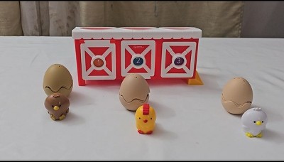 [This review was collected as part of a promotion.] My son absolutely loves playing with it he loves to take the eggs apart and pull the chickens out and place back in and try to put eggs back together, he also loves stacking the egg pieces in one spot and doing the same with the chickens he absolutely loves the playing with the chicken coop as well.