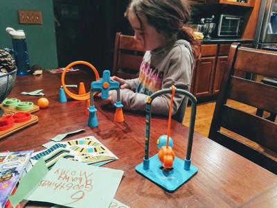 [This review was collected as part of a promotion.] When we first opened the box, my kids were right away excited because It looks like so much fun! The design on the toys and the stickers included to decorate it, made this toy very appealing to my kids! Then I showed them the challenge cards! And they were So excited to do these challenges! Very thought provoking and entertaining. It makes you solve problems and keeps your brain working. It's not to easy and not too hard and the many ways to could use it keeps the kids busy and learning for a good amount of time. Overall this is a wonderful educational toy!