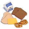 - Includes 2 slices of wheat bread, 2 slices of turkey, lettuce, tomato, cheese, 4 celery sticks, 2 pretzels, grapes, orange and milk