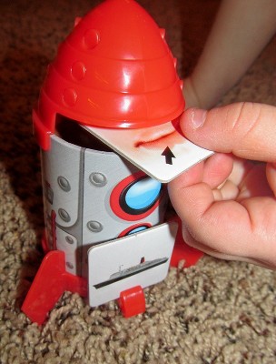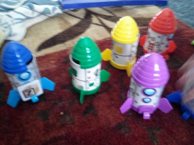The idea of this is great and cute for the kids, but the square cards often get stuck in the round rockets. I have some that we've been unable to get unstuck from the bottom even with the use of tools. Also, some of the pictures are kind of ambiguous.
