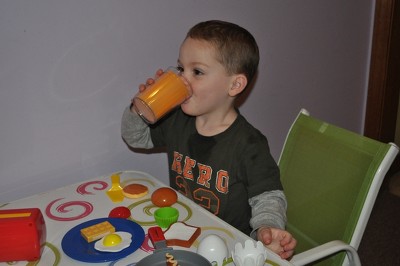 My 2 1/2 year old loved having his own food to "cook." He enjoyed being able to make mommy breakfast. Durable toys that are very easy to wash.