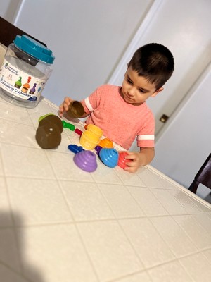 Turn learning to count into a colorful cupcake party! Toddlers build new counting, color, and number skills every time they snap with this set of Snap-n-Learn Counting Cupcakes from Learning Resources. A festive party-ready entry in our popular Snap-n-Learn line of toddler learning toys, these fun two-piece cupcakes come with a cool snap-apart, push-together action that helps little hands build essential coordination and other fine motor skills. You can even make up your own fine motor game or preschool learning activities! The skill-building fun doesn't end there, though—this educational toddler toy come with 5 pop-in number candles, so kids can learn new counting and number recognition skills with every playtime! This set of Snap-n-Learn Counting Cupcakes comes in a reusable plastic storage bucket—when playtime is over, these toddler toys store quickly and easily until next time. Ready for all kinds of preschool learning activities, this set makes a natural addition to toddler Montessori toys in homes or classrooms. When your kids play with preschool learning toys from Learning Resources, they’re doing more than just having fun. They’re also learning essential skills. Our award-winning educational toys keep kids engaged through hands-on, screen-free play that helps them build and retain new talents in letters, numbers, shapes, colors, and more. Made from durable, BPA-free plastic, our preschool toys are ready for years of learning fun at home or in the classroom. We're Learning Resources, and learning is where we play. With nearly 40 years of experience, our family-owned company’s mission is founded on offering kids educational toys for infinite inspiration to succeed in school and beyond. From ABCs and 123s to fine motor and STEM, our award-winning educational toys help kids discover countless ways to develop a lifelong love of learning while they build new skills. In 2022, Learning Resources expanded this dedication to learning and enrichment with Brightkins, a line of interactive pet training tools and toys that help families discover bright ways for pets to play! Learn more about how we turn a childhood love of play into a lifelong love of learning with a visit to our brand store today.