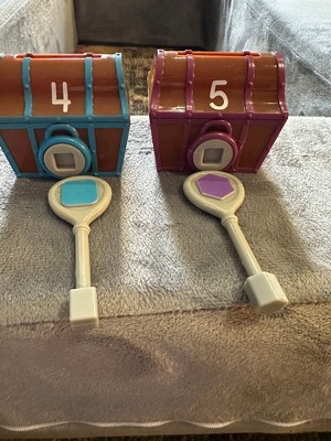 There's pirate treasure afoot, and it's packed with learning fun! Unlock fine motor fun and new sorting and matching skills with the Sorting Surprise Pirate Treasure from Learning Resources. Within each of this set's five numbered plastic pirate chests hides a colorful toy surprise; kids can discover a purple parrot, a green octopus, a red spyglass, and more! To capture their pirate treasure, kids must unlock each chest using the correct key; each lock features a different shape, so choose carefully! Sized for little hands, the keys help kids build coordination and other fine motor skills with every pop of their pirate chests. As they count up their new treasures, kids will also build color and shape identification skills, but that's not all—the Sorting Surprise Pirate Treasure also includes 15 colored treasure coins that add to the sorting and matching fun. Sort pirate treasure by color, match the coins to their toy surprises, or just drop them through the slots in the tops of the chest—with the Sorting Surprise Pirate Treasure, imaginative adventures never end!