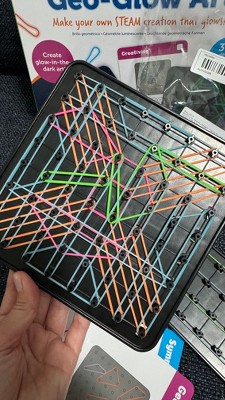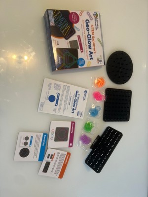 [This review was collected as part of a promotion.] I got the STEM Explorers Geo-Glow Art and my 7-year-old son LOVES it! Honestly, this turned out to be way cooler than I expected. We've tried a bunch of creative toys before, but this one really stands out. What makes it special is that it's not just an art kit it actually sneaks in some learning, which I love. It mixes creativity with STEM concepts like geometry and symmetry. My son was immediately drawn to the glowing effect and all the colorful rubber bands. The design cards are super helpful too they give some structure but still leave a lot of room for creativity. He's been spending tons of time with it, coming up with his own patterns and trying to recreate the ones from the cards. It keeps him focused, helps with fine motor skills, and makes him think. And the fact that it lights up? Huge bonus. He thinks it's the coolest thing ever when we turn off the lights and see his art glow. Compared to similar products we've used, this one is better quality, more engaging, and has more educational value. I'd definitely buy this and would 100% recommend