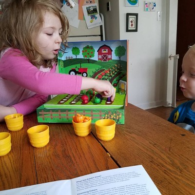 My son loves this set. The included instructions have a lot of different suggestions for ways to play with it to emphasize learning various things (colors, numbers, etc.), and it includes cards you can stand up to show what you want the child to plant in each row. He's been loving playing "farm" and practicing colors, counting, sorting, and the veggie names.